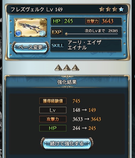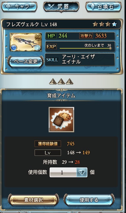 所以換完金月銃以後就開始一個一個手動慢慢餵武器肥料的製程w(怕不小心大成功直接升到150)