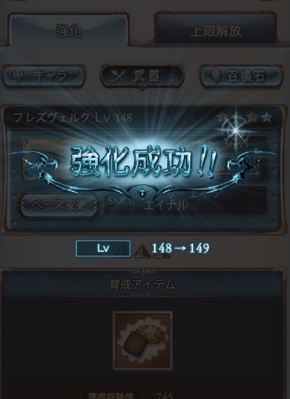 升到148之後就一個一個慢慢餵低經驗值的素材往上升到149